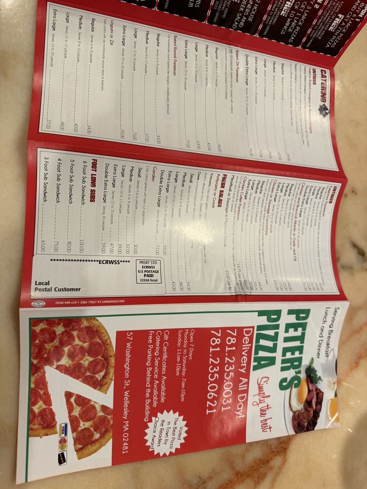 Welcome to Peter's Pizza, a cherished establishment nestled in Wellesley, MA, serving up delicious pizzas and hearty sandwiches. Known for its tasty offerings and inviting atmosphere, Peter’s Pizza embraces customers with its array of options, including many vegetarian dishes to accommodate various diets.